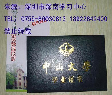 中山大学是经教育部批准开展现代远程教育试点工作的高等学校。中山大学按照教育部有关政策以现代远程教育(网络教育)形式开展主要面向成人在职、从业人员的非全日制高等学历教育。 中山大学网络教育实行学分制,学生在学习年限内通过计算机互联网进行课程学习和交流,在学习中心参加课程考试,修满所学专业规定的学分,颁发经教育部电子注册、国家承认学历的中山大学网络教育(成人高等教育系列)专科、本科毕业证书。本科毕业生符合学士学位授予条件者,颁发成人高等教育学士学位证书。 常年招收高中起点专科、专科升本科新生! <招生专业> 国际经济与贸易、人力资源管理、物流管理、法学、行政管理、汉语言文学、汉语言文学教育、公共关系学、旅游管理、商务英语、英语教育、卫生事业管理、工商管理、电子商务、会计学、金融学、计算机科学与技术 <报名条件> 高中起点专科:具有高中(含职中、中专、技校)毕业证书或年满20周岁、具高中同等学历文化程度。 专科起点本科:具有国民教育系列大学专科或高职或以上学历毕业证书。 {专科升本科考生报名时必须提供国民教育系列专科、高职或专科以上学历毕业证书原件、《教育部学历证书电子注册备案表》或《中国高等教育学历认证报告》。} <报名方法> 考生持本人身份证及学历证书的原件和复印件2份(报本科则须交3份)、近期小1寸免冠蓝底彩照4张(含电子版原件),交报名费70元。 报读专升本还须提供国民教育系列专科、高职或专科以上学历毕业证书原件、学历认证报告或备案表。 <毕业证书、学位证书> 学生在规定的学习年限内修满教学计划规定的全部学分、成绩合格,本科学生在读期间参加并通过现代远程教育试点高校网络教育部分公共基础课的全国统一考试,颁发经教育部电子注册、国家承认学历的中山大学网络教育(成人高等教育系列)专科、本科毕业证书。符合中山大学网络教育本科毕业生学士学位条件者,颁发成人高等教育学士学位证书。 报名地点:中山大学深圳深南学习中心 报名时间:9:00-19:00 周六、日照常报名 QQ:710162181 MSN:710162181@qq.com TEL:0755-26532088、86030813 手机号码:13715201930 网址:www.snpx.org.cn 地址:深圳市南山区南海大道海典居三楼N室(海雅百货公交站台下车即到) ②地铁线路:蛇口线后海站D1/D2出口