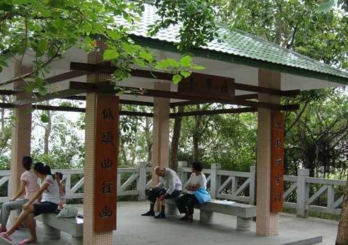 弈园景区,南依山体北临大草坪,是园内景点的点睛之笔,外旷内幽。外广场以疏林缓坡为主,给游人提供一个运动休闲、游戏的大草坪。内庭则清幽、雅致,步移景异,别有一番天地。山顶凉亭,沿着公园登山道,可到达山顶的大小三个观景亭:“皇岗亭”、“积翠亭”、“锦绣亭”,登顶远望,小憩片刻,凉风习习,疲劳顿消。