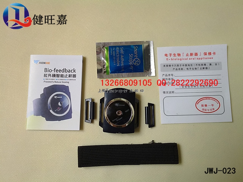 腕式电子止鼾器是一项采用生物回馈的自我训练模式。来降低或减少打鼾行为的一种物理康复仪器。它的过程是透过止鼾器上的微型生物声频侦测器,在侦测超过70+5dB的鼾声10=1秒以上,控制IC即启动脉冲输出机制,以温和的可调的电子针灸方式,透过皮肤送达运动神经,再不吵醒使用者的前提下,促使使用者因反射作用产生变换睡姿,达到抑制和减少打鼾的功效。本品还有省电功能设计,当超过30秒以上侦测不到鼾声时,则自动关机。而累积使用8小时以上即自动关机。只要持之以恒地使用本品,就能达到满意的效果。