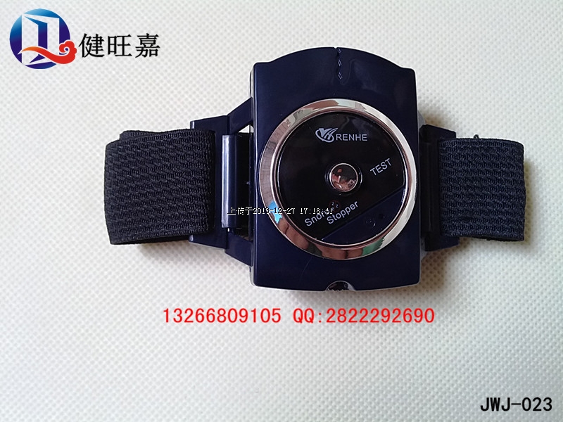 腕式电子止鼾器是一项采用生物回馈的自我训练模式。来降低或减少打鼾行为的一种物理康复仪器。它的过程是透过止鼾器上的微型生物声频侦测器,在侦测超过70+5dB的鼾声10=1秒以上,控制IC即启动脉冲输出机制,以温和的可调的电子针灸方式,透过皮肤送达运动神经,再不吵醒使用者的前提下,促使使用者因反射作用产生变换睡姿,达到抑制和减少打鼾的功效。本品还有省电功能设计,当超过30秒以上侦测不到鼾声时,则自动关机。而累积使用8小时以上即自动关机。只要持之以恒地使用本品,就能达到满意的效果。