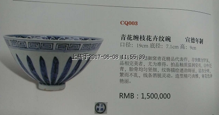 2017年哪家公司拍卖明宣德 青花缠枝莲纹花口碗最好