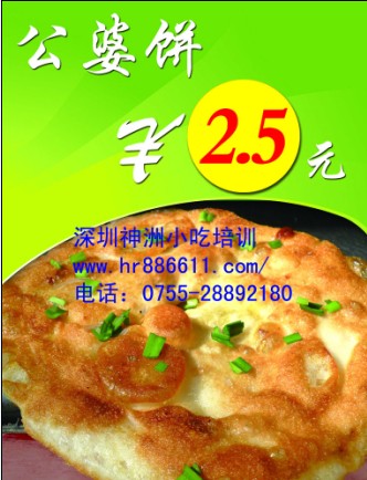 请搜深圳神舟小吃培训]\ 公婆饼具有外表金黄、外脆里软、层次清楚、油而不腻、味道丰富、鲜香自然、余香满口、回味悠长的特 点。它那油香、葱香、馅香、面香令人齿颐留香的无穷回味,使顾客百食不厌。公婆饼现在使用牛皮纸包 装,卫生、方便、快捷,适合现代人生活节奏的需要。公婆饼不仅适合大都市,更适合在县市和乡镇发展 ,如果使用平底锅做,特别适合街头和路边小吃。 公婆饼是恩施地区十大名小吃之一,因其突出的民族风味和特殊的制作工艺深受人们的喜爱。主要食材是 面粉,主要烹饪工艺是烤。 色如金、香同酥、味醇且形美。雅可做宾馆高档席点心,俗可作街头百姓可口小吃。 公婆饼有点像是小一号的汉式肉饼,炭烤焙成,香酥可口。以菜脯、绞肉、香菇、虾仁等配料作馅制成 请搜深圳神洲小吃培训,咨询电话“0755-89740954”。http://www.szszxc.com/ 深圳神洲小吃培训培训项目:重庆酸辣粉、四川麻辣烫、烧烤、烤鱼、土家酱香饼、原味汤粉、坛子鸡、 潮州卤水、陕西凉皮、萝卜牛杂、铁板豆腐、手撕鸡、台湾珍珠奶茶、卤水凉拌菜、清蒸荷叶鸡四川卤水 凉拌菜、铁板烧、精武鸭脖、潮州砂锅粥、重庆火锅技术、千层饼、肠粉、桂林米粉、重庆鸡公煲、东北 麻花、水煎包、南瓜饼、豆沙饼、玉米饼、鸡蛋饼、春饼、芝麻烧饼、肉丝卷、墨西哥鸡肉卷、老北京鸡 肉卷、香酥麻花、脆皮南瓜饼、武大郎烧饼、葡式香酥蛋挞、香港QQ蛋仔、台湾手抓饼、锅贴鱼片等多个 小吃项目培训 更多小吃培训项目请搜深圳神洲小吃培训 联系电话;0755-89740954 咨询热线;13410126517 13530747213 更多小吃项目请点击:http://www.hr886611.com/,或者http://www.szszxc.com/咨询QQ:1239423807 地址:深圳市龙岗区坂田民营市场下车阳光湾畔正对面第二栋楼