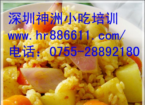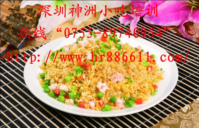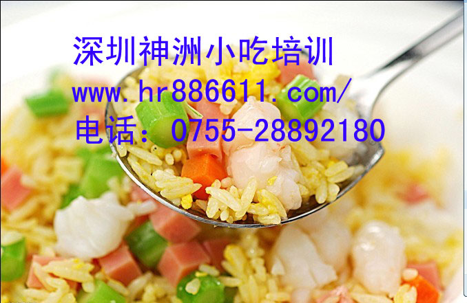炒饭的做法大全 蛋炒饭的做法 菠萝炒饭的做法 请搜深圳神洲小吃培训,咨询电话“0755-89740954”。http://www.szszxc.com/ 炒饭就是先煮好米饭,在炒锅中加各种各样的调料、菜肴,再加上一些特别的配菜炒出香甜可口、各得其所的花样混合饭菜。很受喜欢吃快餐人们的青睐。 网络传说炒饭的发明和李鸿章有关。但实为误传。李中堂只是清末人士,而炒饭历史悠久,譬如我国著名的扬州炒饭,在隋朝时期早已成形。而扬州炒饭脱胎自碎金饭,即蛋炒饭,就更加说明了炒饭出现的时期在更早以前。炒饭是古代东亚人民在日常生活中所自然形成的做饭方法,是劳动人民智慧的结晶。 据说炒饭的发明和李鸿章有关。在一次国事访问中,这位晚清外交界的重量级人物命令他的厨师做一道中国人喜欢吃,洋人也喜欢吃的菜肴。聪明的厨师直奔厨房,挽起袖子,做出这道享誉中外,雅俗共赏的美食。李中堂因此声名大振,可惜那个厨子连名字都没有留下。这令人想起宫保鸡丁,太子太保丁宝桢的府宴压轴菜家喻户晓,甚至四川和贵州两省为争这道菜的归属而对丁大人的籍贯争论不休。他那能干的厨子,也没有留下姓名。 学习内容:咖喱牛肉饭;黑椒牛肉饭;番茄牛肉炒饭;番茄咖喱牛肉饭;麻辣牛肉饭;葱爆火腿饭;木统炒蛋饭;肉丁酱油饭;鸡丝炒蛋饭;咖喱香菇鸡;酸辣双黄;素三丁;扬州炒饭;咖喱番茄饭;西班牙炒饭;鸡蛋虾仁饭;蘑菇火腿;茜香双味饭;双脆炒蛋饭;虾皮青椒饭;咸鱼鸡粒饭;广式腊味炒饭;火腿玉米炒饭;茄汁香肠饭;生菜牛肉饭;翡翠炒饭;菠香炒饭;西班牙海鲜饭;萝卜干碎肉饭. 深圳神洲小吃培训培训项目:重庆酸辣粉、四川麻辣烫、烧烤、烤鱼、土家酱香饼、原味汤粉、坛子鸡、潮州卤水、陕西凉皮、萝卜牛杂、铁板豆腐、手撕鸡、台湾珍珠奶茶、卤水凉拌菜、清蒸荷叶鸡四川卤水凉拌菜、铁板烧、精武鸭脖、潮州砂锅粥、重庆火锅技术、千层饼、肠粉、桂林米粉、重庆鸡公煲、东北麻花、水煎包、南瓜饼、豆沙饼、玉米饼、鸡蛋饼、春饼、芝麻烧饼、肉丝卷、墨西哥鸡肉卷、老北京鸡肉卷、香酥麻花、脆皮南瓜饼、武大郎烧饼、葡式香酥蛋挞、香港QQ蛋仔、台湾手抓饼、锅贴鱼片等多个小吃项目培训 更多小吃培训项目请搜深圳神洲小吃培训 联系电话;0755-89740954 咨询热线;13410126517 13530747213 更多小吃项目请点击:http://www.hr886611.com/,或者http://www.szszxc.com/咨询QQ:1239423807 http://www.szxcpx8.com/ 地址:深圳市龙岗区坂田民营市场下车阳光湾畔正对面第二栋楼