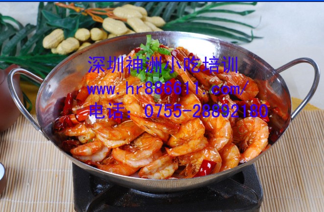 爆爆椒香辣虾干锅 香辣虾加盟费多少 香辣虾火锅加盟 请搜深圳神洲小吃培训,咨询电话“0755-89740954”。 香辣虾是一道汁浓、麻辣味浓,肉质紧韧爽脆的名菜。从一开始的香辣蟹,到现在衍生出来的香辣虾、香辣田螺,在大江南北都成为餐桌上的宠儿,就连被外省人一致认为不能吃辣的广东人,也开始大张旗鼓地吃起香辣料理来。香辣虾的精髓在于其肉质和炒制时加上多种特制香料的调和,让人回味无穷。 香辣虾有好几种做法,一种是加入特制的辣酱炒制,吃过了虾以后再加汤涮菜,和香辣蟹的吃法差不多;还有一种呢,类似水煮的做法,是用郫县豆瓣花椒、辣椒等煮制的;第三种呢,是比较干香的做法,用干辣椒等佐料炒虾,再加入土豆条、红薯条、花生、芝麻等增香的材料,成菜麻辣鲜香,是很好吃的下酒菜。 制作食材   对虾300克,洋葱1个,尖椒3个,青蒜、干辣椒、辣豆瓣酱、盐、红油、蚝油各适量   制作流程   1、对虾用水焯过待用。   2、洋葱、尖椒、青蒜洗净,切段待用。   3、起油锅,爆香干辣椒和辣豆瓣酱。   4、将对虾下锅煸炒至香。   5、加入洋葱、尖椒、青蒜炒至断青。   6、加盐、生抽、蚝油调味,再淋入红油炒匀就行了。 深圳神洲小吃培训培训项目:重庆酸辣粉、四川麻辣烫、烧烤、烤鱼、土家酱香饼、原味汤粉、坛子鸡、潮州卤水、陕西凉皮、萝卜牛杂、铁板豆腐、手撕鸡、台湾珍珠奶茶、卤水凉拌菜、清蒸荷叶鸡四川卤水凉拌菜、铁板烧、精武鸭脖、潮州砂锅粥、重庆火锅技术、千层饼、肠粉、桂林米粉、重庆鸡公煲、东北大麻花、水煎包、南瓜饼、豆沙饼、玉米饼、鸡蛋饼、春饼、芝麻烧饼、肉丝卷、墨西哥鸡肉卷、老北京鸡肉卷、香酥麻花、脆皮南瓜饼、武大郎烧饼、葡式香酥蛋挞、香港QQ蛋仔、台湾手抓饼、锅贴鱼片等多个小吃项目培训 更多小吃培训项目请搜深圳神洲小吃培训 联系电话;0755-89740954 咨询热线;13410126517 13530747213 更多小吃项目请点击:http://www.hr886611.com/,或者http://www.szszxc.com/ http://www.szxcpx8.com/ 咨询QQ:1239423807 地址:深圳市龙岗区坂田民营市场下车阳光湾畔正对面第二栋楼