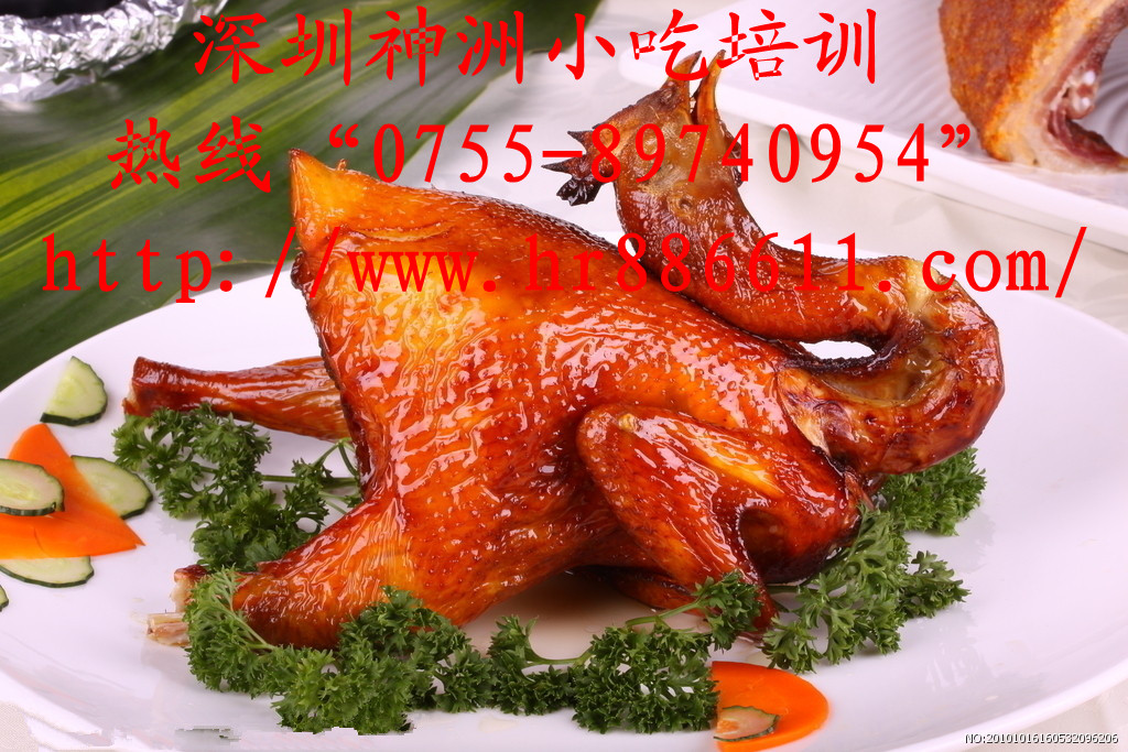 专业港式烧腊培训 正宗烧腊培训 深井烧鹅技术 请搜深圳神洲小吃培训,咨询电话“0755-89740954”。http://www.szszxc.com/ “烤鸭”的来源早在明朝时就已成为北京官府人家中的席上珍品。朱元璋建都南京后,明宫御厨便取用南京肥厚多肉的湖鸭制作菜肴。为了增加鸭菜的风味,厨师采用炭火烘烤,成菜后鸭子吃口酥香,肥而不腻,受到人们称赞,即被宫廷取名为“烤鸭”。 “烤鸭”肉质鲜嫩,汁液丰富,气味芳香。国内各地人士以及外国友人,大凡到北京来的,都要一尝风味独特的“北京烤鸭.故此名闻中外。至今各地很流行大同小异的烤鸭做法! 广式烧鸭已有600年的历史,足可以与北京烤鸭媲美,是广东传统名菜。以整只原料烘烤而成。成品特点是:色泽金红光亮、肉体饱满,腹含卤汁,油脂盈润。切成小块后,皮、骨、肉连而不脱,入口即离。皮脆酥香,肉滑鲜美,骨软香浓。烧鸭的制作非常讲究,烘烤时:以优质木炭为燃料,待其燃到烟尽,适时翻转鸭身,烧出的鸭皮黄脆不焦,肉酥松软、甜嫩离骨,非常可口。若配烧鸭料或酸梅酱食用,更是别具风味。 我们的烧鸭结合传统的烤制方法,采用特有的俺制配料技术,形成了适合广大人民群众的独特风味,鸭体光亮油润、枣红鲜艳,皮层酥脆.. 烧鹅是广州传统的烧烤肉食。烧鹅源于烧鸭,鹅以中、小个的清远黑棕鹅为优,去翼、脚、内脏的整鹅,吹气,涂五香料,缝肚,滚水烫皮,过冷水,糖水匀皮,晾风而后腌制,最后挂在烤炉里或明火上转动烤成,斩件上碟,便可进食。烧鹅色泽金红,味美可口。广州市面上烧鹅店铺众多, 深受群众喜爱! 主要产品有:脆皮烧鹅、烧鸭、烤乳猪、脆皮挂件烧肉、澳门烧肉、吊烧琵琶鸭、麻辣酱板鸭、广东烧鸡、红烧乳鸽、蜜汁叉烧、蜜汁烧排骨、脆皮叉烧、蜜汁烧鸡翅、蜜汁烧大肠、东江/湛江白切鸡、盐焗咸香、手撕鸡、盐焗鸡、咸香鸡、盐焗鸡腿、鸡爪、豉油鸡、贵妃鸡、扒鸡、白云凤爪、坛子鸡,脆皮鸭、香酥鹅、烤鸭、卤牛肉、卤免肉、卤牛肚、卤蹄花、卤口条、卤肥肠、卤蹄膀、卤猪头肉等。 深圳神洲小吃培训培训项目:重庆酸辣粉、四川麻辣烫、烧烤、烤鱼、土家酱香饼、原味汤粉、坛子鸡、潮州卤水、陕西凉皮、萝卜牛杂、铁板豆腐、手撕鸡、台湾珍珠奶茶、卤水凉拌菜、清蒸荷叶鸡四川卤水凉拌菜、铁板烧、精武鸭脖、潮州砂锅粥、重庆火锅技术、千层饼、肠粉、桂林米粉、重庆鸡公煲、东北麻花、水煎包、南瓜饼、豆沙饼、玉米饼、鸡蛋饼、春饼、芝麻烧饼、肉丝卷、墨西哥鸡肉卷、老北京鸡肉卷、香酥麻花、脆皮南瓜饼、武大郎烧饼、葡式香酥蛋挞、香港QQ蛋仔、台湾手抓饼、锅贴鱼片等多个小吃项目培训 更多小吃培训项目请搜深圳神洲小吃培训 联系电话;0755-89740954 咨询热线;13410126517 13530747213 更多小吃项目请点击:http://www.hr886611.com/,或者http://www.szszxc.com/ http://www.szxcpx.com/ 咨询QQ:1239423807 地址:深圳市龙岗区坂田民营市场下车阳光湾畔正对面第二栋楼