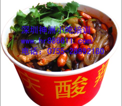 重庆酸辣粉技术 酸辣粉的做法 深圳八哥酸辣粉培训 请搜深圳神洲小吃培训,咨询电话“0755-89740954”。http://www.szszxc.com/ “酸辣粉”是四川、重庆、贵州等地的传统名小吃,由于价廉物美,长期以来一直深受人们的喜爱,其特点是“麻、辣、鲜、香、酸且油而不腻”。 “酸辣粉”系纯然绿色食品,主粉由红薯,红苕,豌豆按最佳比例调和,然后由农家用传统手工漏制而成。由于价廉物美,长期以来一直受人喜爱,近年来在南方地区更是生意火爆。其特点是“麻、辣、鲜、香、酸且油而不腻”!重庆酸辣粉,素有“天下第一粉”之美名。 “酸辣粉”是四川、重庆、贵州等地的传统名小吃,由于价廉物美,长期以来一直深受人们的喜爱,其特点是“麻、辣、鲜、香、酸且油而不腻”。 “酸辣粉”系纯然绿色食品,主粉由红薯,红苕,豌豆按最佳比例调和,然后由农家用传统手工漏制而成。由于价廉物美,长期以来一直受人喜爱,近年来在南方地区更是生意火爆。 酸辣粉前景与优势: 酸辣粉,市场广阔,商机无限:人们的主食是各种普通粉条,粉丝,面条等,这些食品历来被人喜爱,中国十三亿人口人人都是消费者,而且个个吃得起,吃得香,吃得饱,快速经济实惠;从早餐的汤粉,牛肉粉,肥肠粉,炸酱面 …… 午餐的丝粉煲,炒粉,凉拌面 …… 晚餐荤素面粉以及休闲小吃中,粉丝、面条无处不有。各地方特色的粉丝面条几乎都卖得特火。像酸辣粉这种香飘几十米,口味独特,保健功能神奇的绝色食品,生意自然更加火爆无比了。 素有“天下第一粉”之称的酸辣粉,以其口味独特的优势长期以来一直在全国各大城市销售异常火爆,更是创下在重庆解放碑日平均销售过8000碗的成绩。柔和四川的尖辣,加上武汉风味,口味独特,汤料鲜美。酸辣粉有两大基本类型的口味,一种是麻辣型,一种是清爽型,然后由这两种系列口味演变成多种特色口味。 深圳神洲小吃培训培训项目:重庆酸辣粉、四川麻辣烫、烧烤、烤鱼、土家酱香饼、原味汤粉、坛子鸡、潮州卤水、陕西凉皮、萝卜牛杂、铁板豆腐、手撕鸡、台湾珍珠奶茶、卤水凉拌菜、清蒸荷叶鸡四川卤水凉拌菜、铁板烧、精武鸭脖、潮州砂锅粥、重庆火锅技术、千层饼、肠粉、桂林米粉、重庆鸡公煲、东北麻花、水煎包、南瓜饼、豆沙饼、玉米饼、鸡蛋饼、春饼、芝麻烧饼、肉丝卷、墨西哥鸡肉卷、老北京鸡肉卷、香酥麻花、脆皮南瓜饼、武大郎烧饼、葡式香酥蛋挞、香港QQ蛋仔、台湾手抓饼、锅贴鱼片等多个小吃项目培训 更多小吃培训项目请搜深圳神洲小吃培训 联系电话;0755-89740954 咨询热线;13410126517 13530747213 更多小吃项目请点击:http://www.hr886611.com/,或者http://www.szszxc.com/ http://www.szszxc.cn/ 咨询QQ:1239423807 地址:深圳市龙岗区坂田民营市场下车阳光湾畔正对面第二栋楼