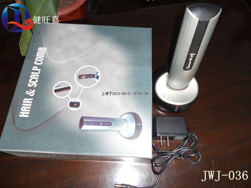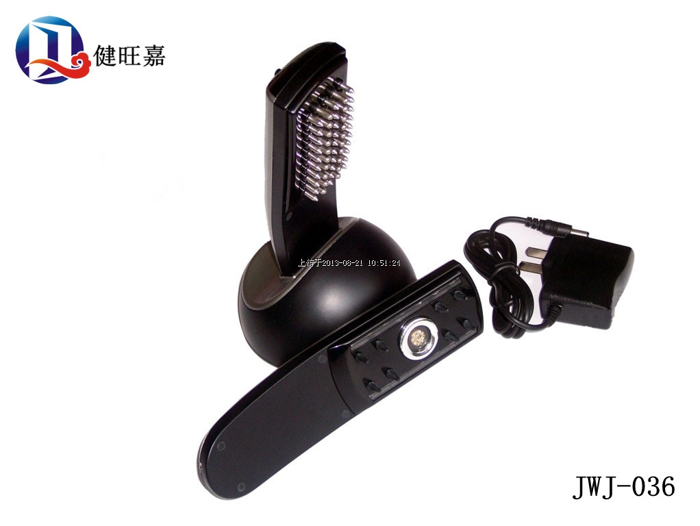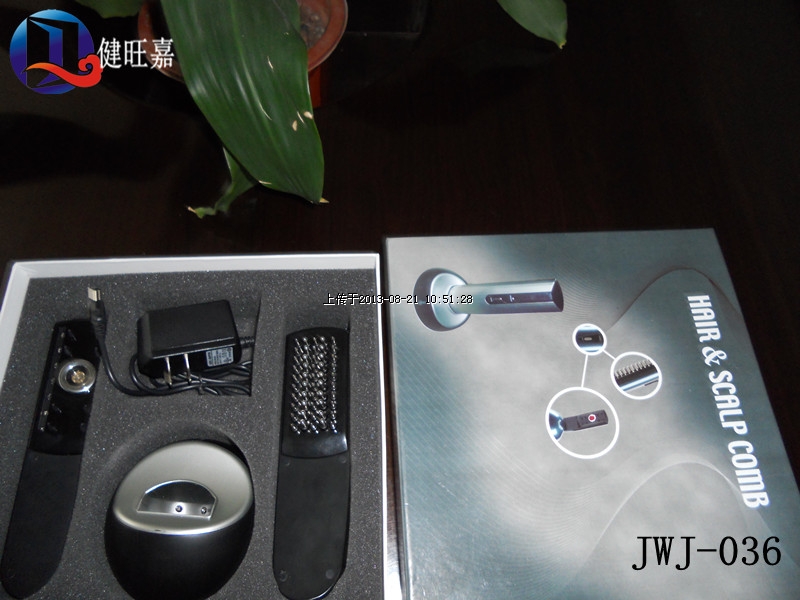 2. 内置胆囊可储存生发营养液。在嵌入式梳齿中两排特制微型钢珠按摩球内均匀的注入生发营养液,当进行磁疗按摩的同时在毛囊受紧张的瞬间注入毛囊深部,直接给发根供给营养,达到激活休眠毛囊、生长健康头发的目的。