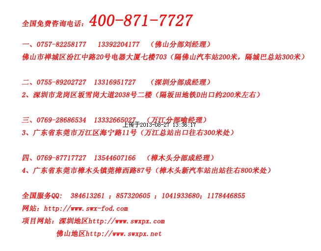 0769-87717727 13544607166 (樟木头分部成经理)