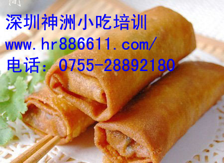 春卷的制作方法 春卷的做法培训 正宗的春卷怎么做 请搜深圳神洲小吃培训,咨询电话“0755-89740954”。http://www.szszxc.com/ 春卷是用上白面粉加少许水和盐拌揉捏,放在平底锅中摊烙成圆形皮子,然后将制好的陷心摊放在皮子上,将两头折起,卷成长卷下油锅炸成金黄色即可。春卷皮薄酥脆、馅心香软,别具风味,是春季的时令佳品。 立春吃春卷是我国民间的一个传统习俗,就像端午吃粽子,大年三十吃饺子一样,伴随人们千百年来一直的延续,春卷也叫春饼,除了表示迎接新春的意思以外,还因为春卷里面通常包含了大量春天新鲜的蔬菜,因此营养价值非常高。 春卷在我国有着悠久的历史,北方人也称为“春饼”。据传在东晋时代就有。那时叫“春盘”。当时人们每到立春这一天,就将面粉制成的薄饼摊在盘中,加上精美蔬菜食用,故称“春盘”。那时不仅立春这一天食用,春游时人们也带上“春盘”。到了唐宋时,这种风气更为盛行。著名诗人杜甫的“春日春盘细生菜”和陆游的“春日春盘节物新”的诗句,都真实地反映了唐宋时期人们这一生活习俗。在唐代,春盘又叫五辛盘。 随着烹调技术的发展和提高,“春饼”又演变成为小巧玲珑的春卷了。这时它不仅成为民间小吃,而且也成为宫廷糕点,登上大雅之堂。在清朝宫廷中的“满汉全席”128种菜点中,春卷是九道主要点心之一。 深圳神洲小吃培训培训项目:重庆酸辣粉、四川麻辣烫、烧烤、烤鱼、土家酱香饼、原味汤粉、坛子鸡、潮州卤水、陕西凉皮、萝卜牛杂、铁板豆腐、手撕鸡、台湾珍珠奶茶、卤水凉拌菜、清蒸荷叶鸡四川卤水凉拌菜、铁板烧、精武鸭脖、潮州砂锅粥、重庆火锅技术、千层饼、肠粉、桂林米粉、重庆鸡公煲、东北麻花、水煎包、南瓜饼、豆沙饼、玉米饼、鸡蛋饼、春饼、芝麻烧饼、肉丝卷、墨西哥鸡肉卷、老北京鸡肉卷、香酥麻花、脆皮南瓜饼、武大郎烧饼、葡式香酥蛋挞、香港QQ蛋仔、台湾手抓饼、锅贴鱼片等多个小吃项目培训 更多小吃培训项目请搜深圳神洲小吃培训 联系电话;0755-89740954 咨询热线;13410126517 13530747213 更多小吃项目请点击:http://www.hr886611.com/,或者http://www.szszxc.com/咨询QQ:1239423807 http://www.szxcpx8.com/ 地址:深圳市龙岗区坂田民营市场下车阳光湾畔正对面第二栋楼