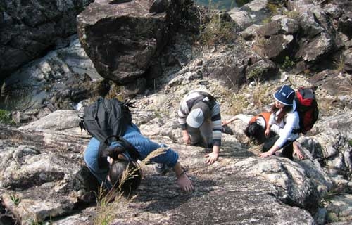 进入溪谷后,前300米水量稀少,因为村民有截流引用水源用于养殖,所以景色有些不如人意,过后则开始美景不断,且有渐入佳境之感觉,一路瀑布不断,可圈可点的是大鹿湖坑的潭水,一路水潭连连,因其潭水大都大而深(浅潭则一米左右,深潭有三米以上)所以潭潭皆可畅游,也有一些浅滩地,有好多鱼类及两栖动物,如蝾螈(保护动物,禁止捕捉),清道夫,小虾,山涧鳅等。上到一个大瀑布时右手边有山路上山,如不想登顶的人就此停步(上山相当危险),上瀑布后水量减小,景色渐差,遇大分岔口向右,继续前行有好多分岔口,水量及宽度差别较大,走水量大的分岔。快上顶时的路线选择偏右,出了丛林进入茅草地后可能感觉不到前人走过的路,可以直接向左登顶上七娘山,上顶后可见明显山路向左两个山头上到七娘山山顶。大鹿湖坑溪谷,春夏秋三季适合轻松不登顶游玩,而春秋冬则适合登顶游乐。人说马栾山溪谷美,然大鹿湖坑溪谷不相伯仲,或有过之。阳光明媚之时,摄影好地方也。