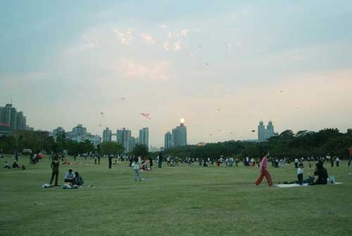 东部和东南部形成两片以大面积草地和微地形为主的20万平方米的草坪广场景区,是市民、游客假日周末放飞风筝、放飞心情及休闲娱乐的场所,市民聚集在这里放风筝已形成深圳市的一大人文景观。