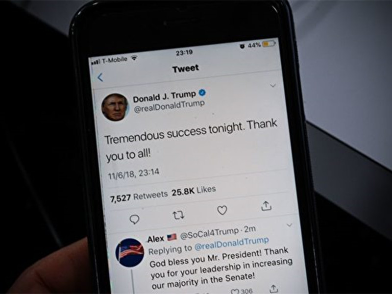 特朗普在担任美国总统期间,在Twitter上拥有大量追随者。不过,2021年1月6日,特朗普因号召支持者前往华府抗议,导致国会大楼被占据,酿成死伤,特朗普帐户被Twitter永久封锁。
