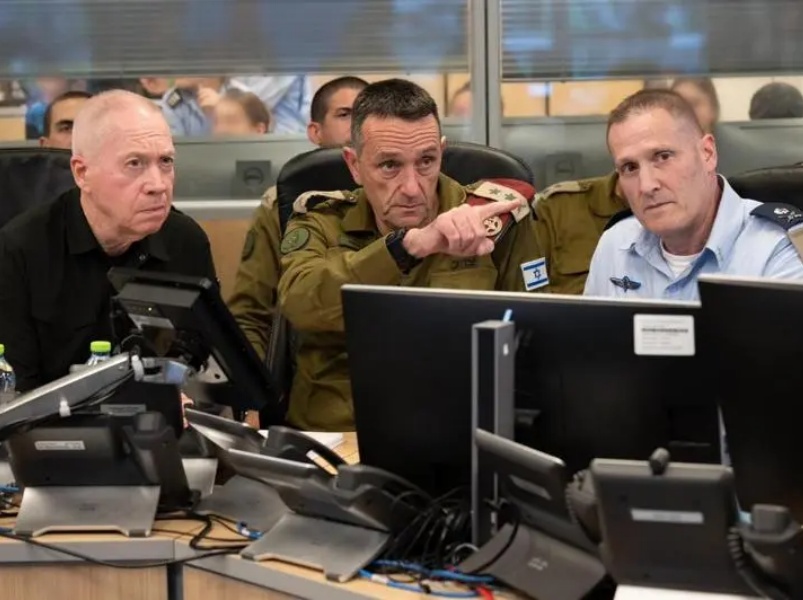 以色列国防部长加兰特(左)、参谋总长哈勒维(中)与空军官员9月27日在指挥室调度空袭黎巴嫩首都贝鲁特行动。