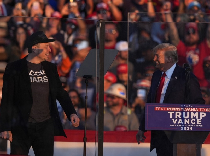 美国共和党总统候选人,前总统特朗普重返7月13日遭企图暗杀的枪击案现场宾夕法尼亚州巴特勒县,举行竞选集会,现场保安严密,演讲台设有防弹玻璃,多位狙击手在附近建筑物屋顶戒备,会场周边亦停泊了多架大货车遮挡视线,美国亿万富豪Tesla行政总裁马斯克到场支持。这是马斯克表态支持特朗普以来,首度现身特朗普的造势活动。