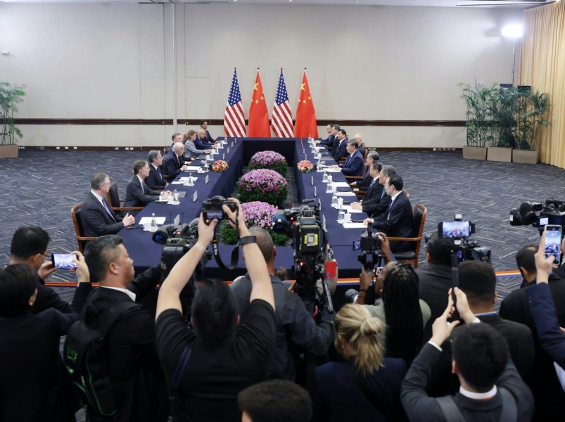 中国国家主席习近平在秘鲁首都利马出席亚太经合组织(APEC)领导人非正式会议期间,与美国总统拜登举行会面。