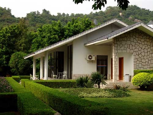 每栋别墅都具有完备的设施、高素质的一流服务,旅游度假、休闲娱乐功能完善,既各自独成体系,又曲径通幽,楼楼相望,互成景观。山庄拥有各式客房280多间;20余个会议室;20余间格调高雅的餐厅、歌舞厅、卡拉OK;各式康乐、健身项目一应俱全。