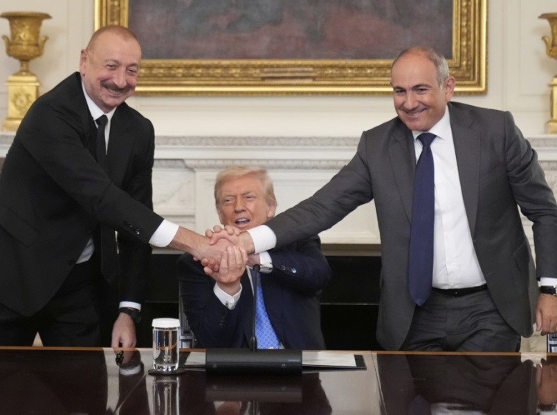亚美尼亚总理帕希尼扬与阿塞拜疆总统阿利耶夫8月8日到访白宫,与美国总统特朗普举行三边会谈,并签署由美国斡旋的和平协议,结束两国三十多年的战斗。两国领导人皆赞扬特朗普为结束两国冲突而作出的贡献,并表示将提名特朗普角逐诺贝尔和平奖。 特朗普在签字仪式上表示,亚美尼亚与阿塞拜疆交战了很长时间,现在将成为朋友,而且会是长期的朋友。两国签署协议后,将承诺停止战争、建立外交关系并相互尊重此的主权和领土完整。美国亦与两国分别签署协议,扩大在能源、贸易和技术方面的合作,包括人工智能领域。